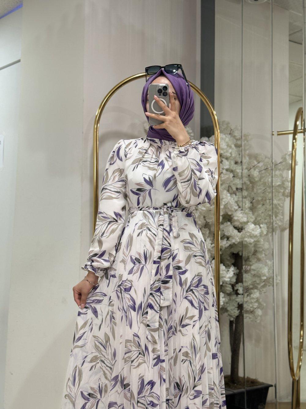 330192 DESENLİ ŞİFON ELBİSE Lila