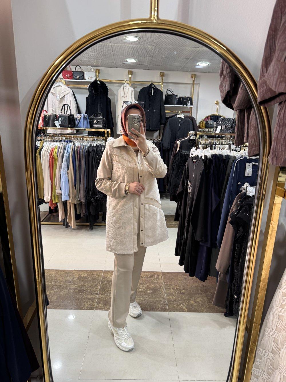 ANGORA DERİ DETAY YELEKLİ 3 LÜ TAKIM Bej
