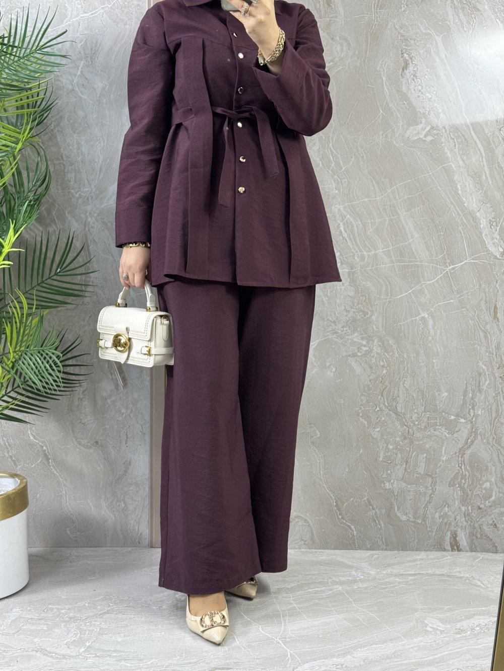 BEL KUŞAKLI ŞIK PANTOLONLU TAKIM Bordo
