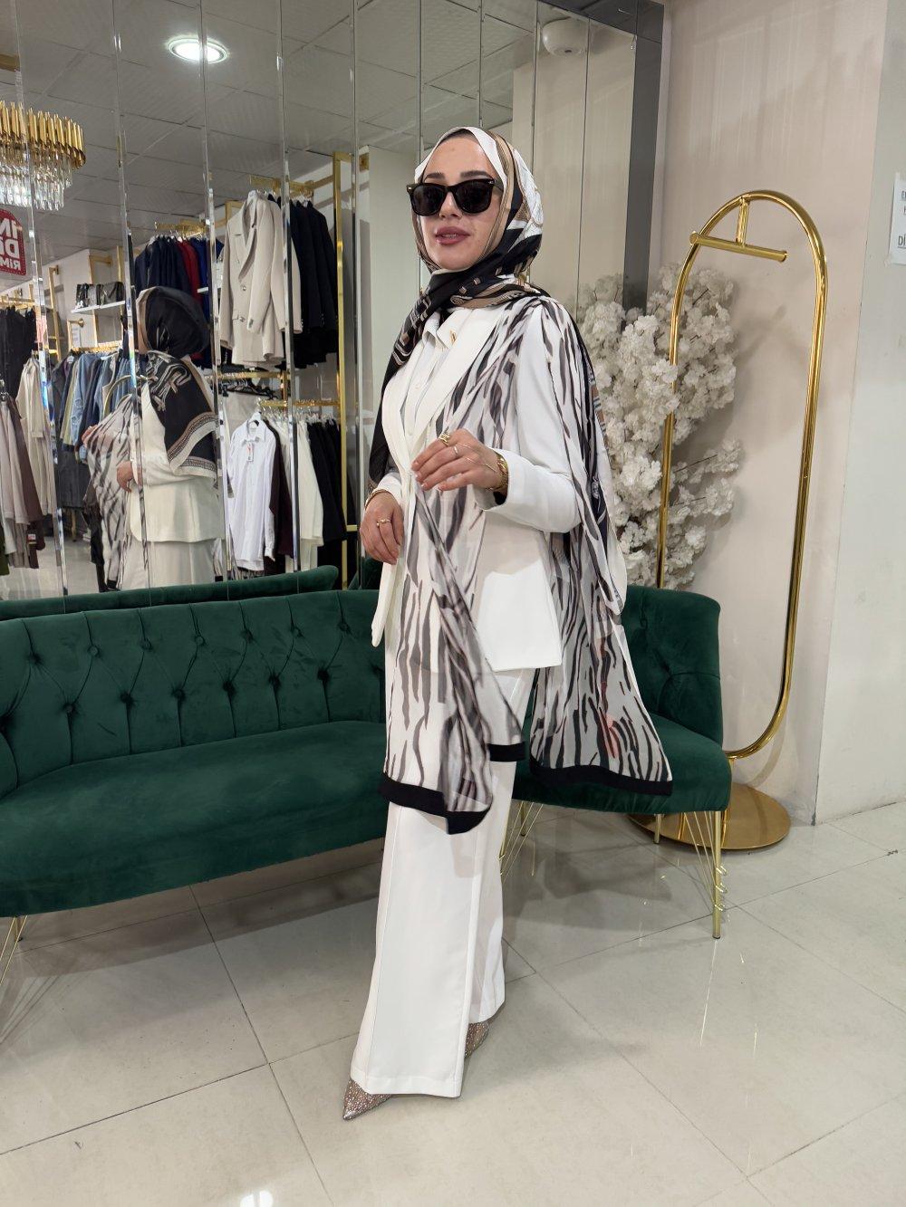 ŞAL DETAY BLAZER TAKIM Beyaz