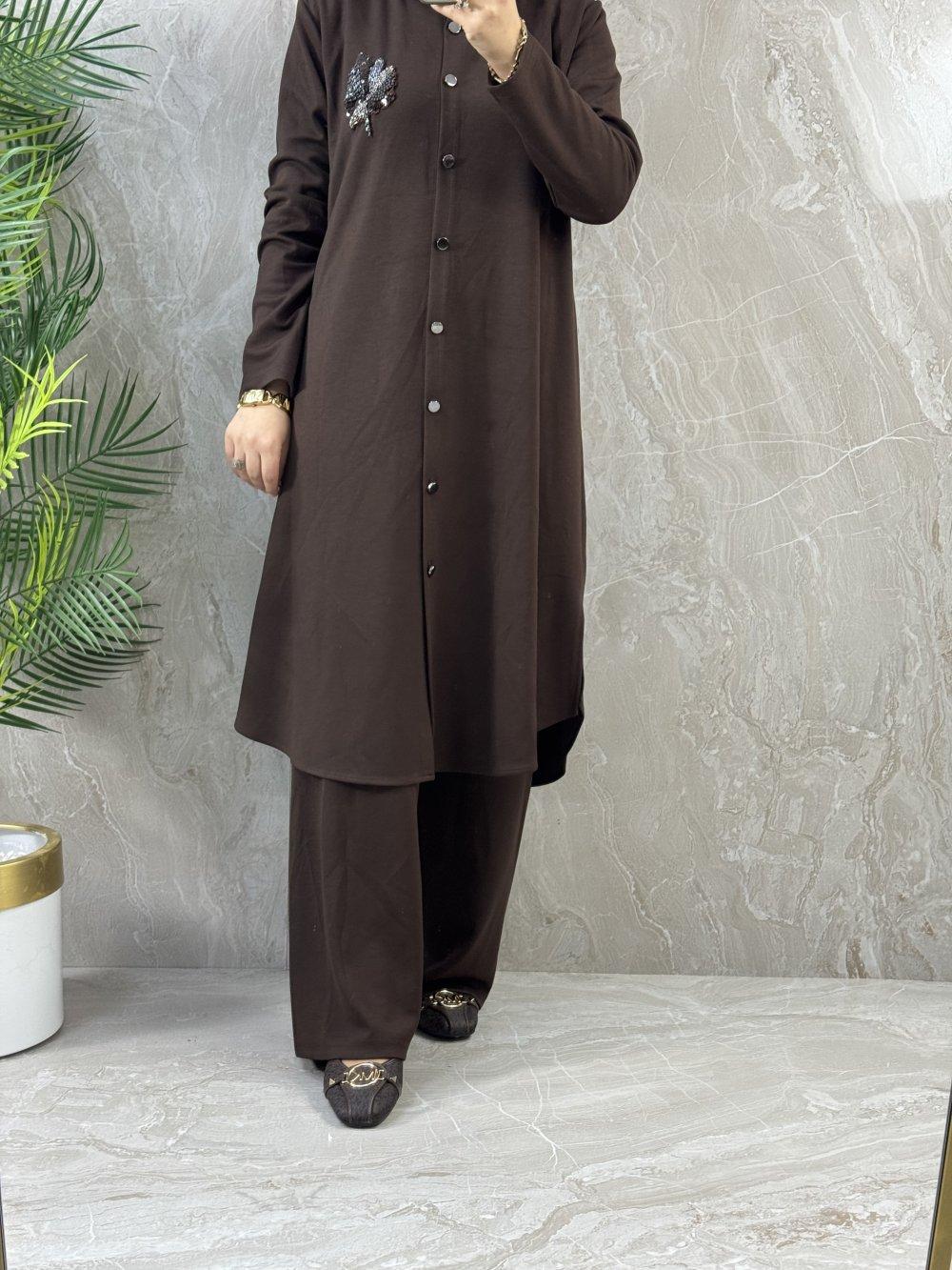 DÜĞMELİ EXCELENT PANTOLONLU TAKIM Acı Kahve
