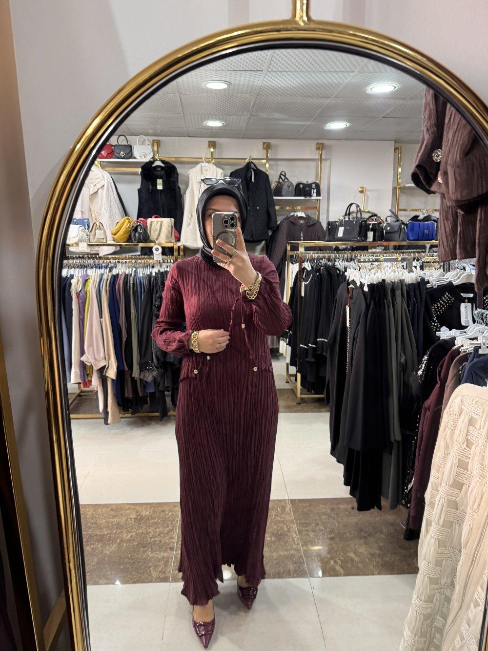 KRAŞ DETAYLI ELBİSE Bordo