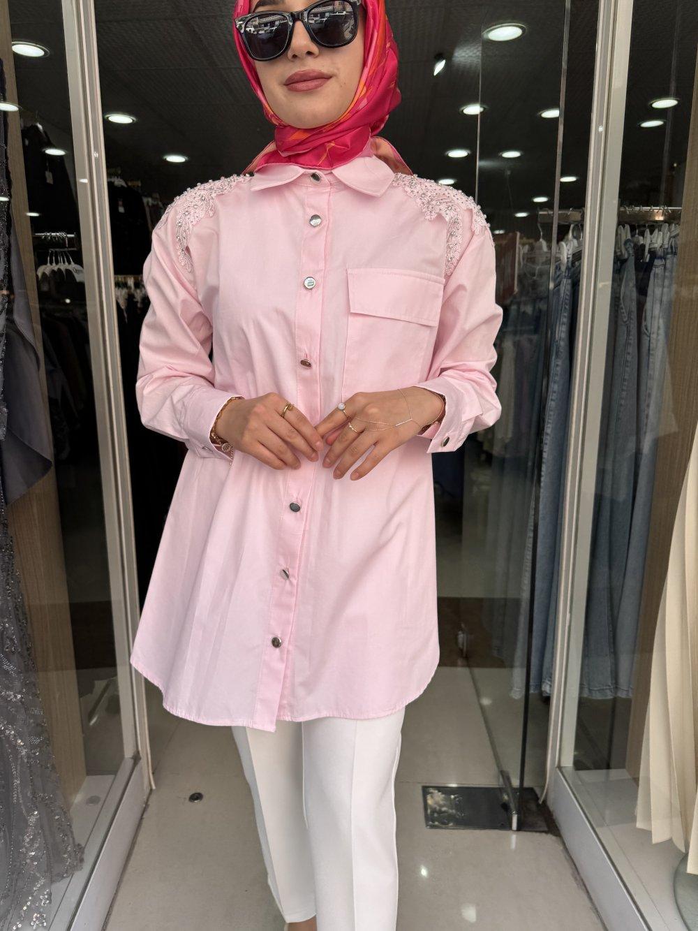 OMZU TAŞLI GÖMLEK Pembe