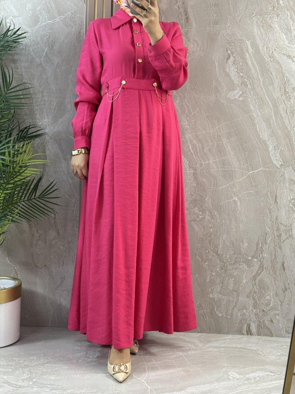 ÖNÜ YARIM DÜĞMELİ ELBİSE Fuşya