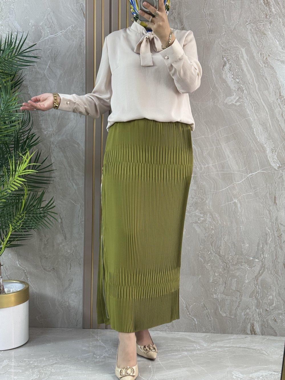 PİLİSELİ ŞIK ETEK Fıstık Yeşili