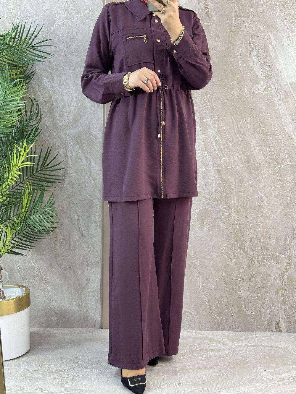 TENCEL CEP FERMUARLI BEL BAĞCIKLI TAKIM Bordo