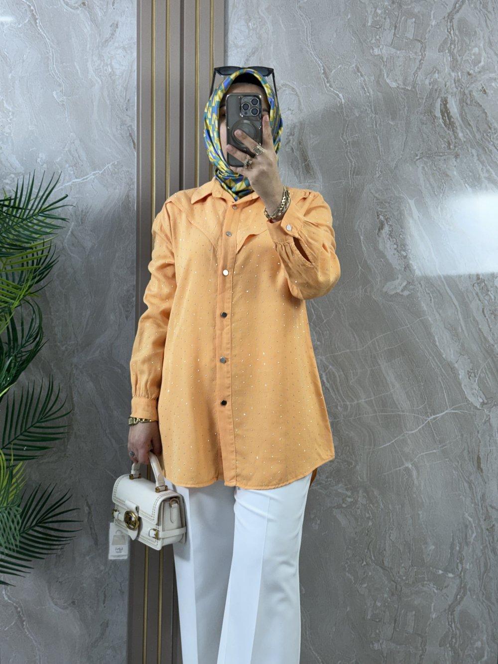 TENCEL TAŞLI GÖMLEK TUNİK Turuncu