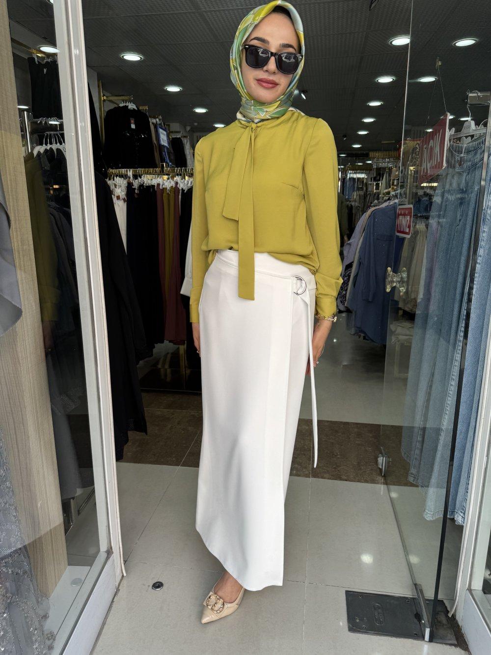 YANDAN BAĞLAMALI KUMAŞ ETEK Beyaz