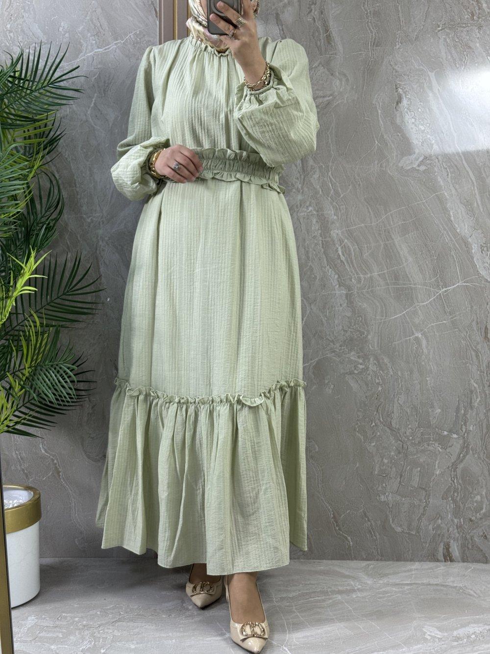 YAZLIK GOFRE ASTARLI ELBİSE Mint Yeşili